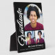 Be proud, rejoice and showcase this milestone of your favourite grad. Create this simple, modern, minimal personalised 3 photo easel back plaque for a keepsake you’ll always treasure. Bold, graphic, white handwritten script calligraphy, sans serif typography and 3 photos of your choice in an arch shape overlay a dramatic black background. Customise the text with your graduate’s name, school name, class year and add your photos. Matching invites, thank you cards, address labels, hand signs yard signs, banners and other graduation goodies are also available in this trendy and minimalist collection. It's the perfect gift for grandparents, as well as for yourselves or your grad! And guaranteed to preserve cherished memories of their special occasion.