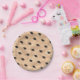 This modern minimalist unisex graduation party simple paper plate design features a black mortar board / graduation cap pattern on a rose gold / copper faux foil texture background.