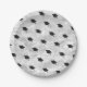 This modern minimalist unisex graduation party simple paper plate design features a black mortar board / graduation cap pattern on a silver / platinum foil texture background.