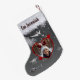 🎄This unique Christmas stocking has faux white fur across the top, your personalized family member's name in a snow-capped font, and images of a drone, fighter jet, and helicopter with red bows, and a red heart containing your special uploaded photo.