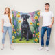 Black Great Dane Dog Spring Flowers Painting Fleece Blanket