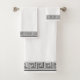 Bath towel set with a Grecian frieze design. You can customise this bath towel set with any text of your choice. Should you require any help with customising then contact us through the link on this page. You can have these towels in any colour you want. Just select your preferred colour from the menu. Black Grecian frieze design bath towel set