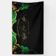 Beautiful script font reads 'Happily Ever After'. This elegant wedding backdrop banner features an artistic wash of inks in emerald green, bronze, black and gold. A beautifully dark and moody ink washed wedding backdrop banner with deluxe emerald green, black and gold details. Easily add your wedding details to the template using Zazzle's customisation tool. Please contact us if you require assistance via Zazzle Chat. Black Green Elegant Script Wedding Backdrop Banner.