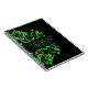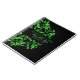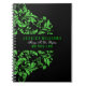 Elegant bright green floral swirls lace over black background. Customisable notebook template for planning your wedding. Things to do before we say I do.