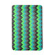 A medium size, bath mat featuring an elegant pattern design of multicolored chevrons in black, grey, green and turquoise.