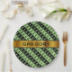 This paper plate design features a pattern of black pound sign (£) symbols within green stripes, and green pound sign (£) symbols within black stripes. It could make a great gift for somebody who works in the finance industry (such as an accountant, or an investor, or a foreign currency exchange trader, or in banking), or perhaps for somebody who has an interest in collecting monetary bills and coins. It also features a customised name within a faux gold coloured area.