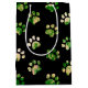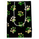 Black Green Textured Paw Print Pattern Medium Gift Bag