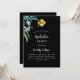 A classic black background, decorated with greenery. A golden cap with the graduation year. Personalise and add a name and party details.
