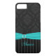 This modern black and grey damask with stripes iPhone 7 case has a turquoise blue PRINTED ribbon and a PRINTED diamond jewel buckle on it. It can be customised with your logo, name, initials, or other text. If you need assistance, email niteowlstudio@gmail.com.