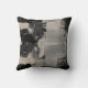Modern throw pillow features an artistic abstract design in black grey and beige palette. An artistic abstract design features shades of grey and black on a neutral beige background. The lighter grey and black design elements compliment the neutral coloured background.