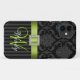 This monogrammed black and grey damask iPhone 5 Case-Mate Case has a photo of this design embedded into the hard plastic cover. The design is made up of a black and grey floral damask pattern, a printed lime green ribbon, a printed square brooch with diamonds and a black and grey striped pattern bottom portion where you can add your name and monogram initial in gorgeous script fonts. This iPhone 5 case cover is the perfect way to accessorise your iPhone 5. Be stylish and girly all at the same time. Design by Elke Clarke©2012. Graphics licensed for use.