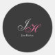 Black Grey Monogram Name Initial Letters Script Classic Round Sticker