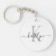 This modern keychain with your first name in a trendy script font in black and your first initial in a modern cap font in grey is perfect for your keys.