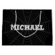 Black grey spider web Halloween pattern Your name Large Gift Bag