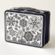 Lunch Box in classic old school colour finish printed with Black And Grey On White Retro Floral Art Seamless Pattern original hand drawn graphic design artwork illustration by TheFabricSeal print on demand shop at Zazzle.com #ZazzleMade ©️Original. https://www.zazzle.com/store/thefabricseal