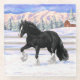 Black Gypsy Vanner Irish Cob Draught Horse In Snow Glass Coaster