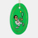 This ornament features the graphic image of male tennis player with black hair. On the back you can personalise this with a name and year. Or, put whatever you want on the back. This makes a great gift for the tennis lover you know for Christmas, birthday, Tennis Day, co-worker, etc. It is a great way to represent the tennis player in the family on the Christmas tree. Designed by Sheila Cicchi, Brownielocks.com. All Rights Reserved. NOTE: Due to the design style, you can only buy this on OVAL ornaments.