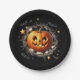 Black Halloween Background with Orange Pumpkin Paper Plate