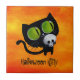 Black Halloween Cat with Skull Tile