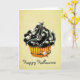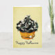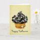 Cute Halloween design - cupcake with black cream and lots of tiny skulls and bones in it. To addition, small skull pin attached to the ribbon. Definitely nice Halloween dessert for any party of 'trick or treat'.