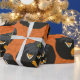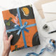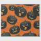 Black Halloween Pumpkins on Orange Wrapping Paper