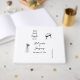 A unique hand drawn illustration wedding design suite in black and white. This contemporary modern wedding design is ideal for all seasons, Spring, Summer, Fall, Winter. A contemporary, fun and cute wedding hand drawn design. A black and white hand illustrated and hand written themed wedding guest book design with modern elegant elements. Matching wedding invitations and other stationery items are also available.