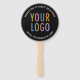 Easily personalise this black hand held fan with your own company logo and custom text. Custom printed hand held fans are handy promotional items for outdoor events or other hot weather occasions. 5.75 inch diameter. Available in black and other colours. Low minimum order quantity and no setup fee.