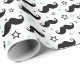 Cute wrapping paper featuring a pattern of black handlebar moustaches and aqua blue stars. Bright and fun design. Great for a moustache bash birthday party or a little man baby shower. Design and illustration by MheaDesign.