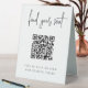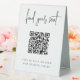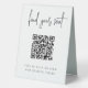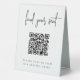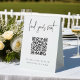 Make it easy for your wedding or event guests to find their seat with this QR code table tent sign. "Find your seat" appears at the top, with brief instructions beneath. Enter the url for your seating assignments, and the QR code will update. Guests can scan the code to easily find their spot.