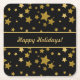 Black Happy Holidays Coaster with Golden Stars. A coaster for your Christmas and New Year classy Home Decor!