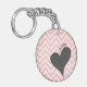 Black Heart on Pink Chevron Stripe with Name Key Ring