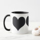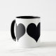 White and black 11 oz. ringer combo mug with three images of a black heart. See the entire Valentine's Day Mug collection in the FOOD/BEV | Dishes section.
