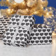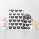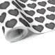 This wrapping paper features a repeating pattern of black hearts with a subtle outline.
