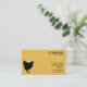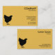 A clear stylish and attractive business card template with a simple but attention grabbing Chicken (Hen) symbol. Main company details on the front, with name and personal contact on the back, along with a repeat of the symbol motif. Suitable for a variety of businesses agricultural, food related, etc. This card is fully customisable.