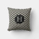 Black Herringbone Chevron Pattern with Monogram Cushion