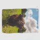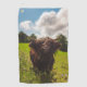 Black highland cow grazing green field sun light golf towel