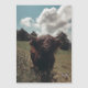 Black highland Scottish cow grazing vintage retro. Photograph of a majestic black highland Scottish cow grazing on a summer green field with grass in mouth and chicory flowers in front. Post processed with muted colours for a vintage retro effect. Available on many products varying from prints to party supplies and sport equipment.