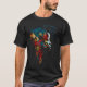 I give wanted to give this a 4 instead of a 5 because these Basic DARK T0shirts run unexpectedly SLIM or Narrow. Which is great if you do not have a potbelly, but I have a paunch. It isn't the shirt's fault that I've got a beer belly. The design and shirt itself is a quality cotton shirt. The color is more of a deep purple, but still a very pretty color. The Basic DARK T-shirts run a bit SLIMMER than the Basic Ts. The neck is a fraction narrower (or seems to be narrower) also. I'm a paunchy middle-aged woman and my neck is 12 inches (31cm) thick and the neckline fell about the same as in the photo of the man, and I had the desire to tug it a bit. So if you're a thick necked man or like loose shirts, be aware these are slimmer shirts. Once I get rid of my lockdown paunch it'll look great. The shirt washed well in cold water with no apparent bleeding. We don't have a dryer, so it hung dry. Did not shrink. Love the colors and the design. The design looks smaller on my shirt than it does on the model on-line. But still, it looks good on the shirt. The printing looks as it does on the model, just the size seems fractionally smaller. Washed garment in cold water, hung dry and design appeared unaffected.