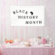 The phrase Black History Month written in a variety of fonts, all against the faded background of the African flag. This logo is the perfect combination to represent African American history and celebrate Black History Month