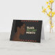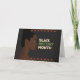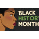 A young African American woman with dark skin, curly hair, and a serious expression against a black background with colourful geometric patterns and the 'text' Black History Month