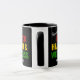 Stylish Black History Month Health & Wellness Christian coffee mug, with bold red, yellow and green typography. The text reads PROMOTING BLACK HEALTH & WELLNESS with a Scripture reference for abundant life of JOHN 10:10 on the front and back, and in between is CUSTOMIZABLE Christian text based on John 10:10 and a monogram, so you can create your own text (eg. add your organisational details) and add your initial(s). This message is an important reminder not just for Black History Month and for Black Wellness Health Week but throughout the year, because Jesus came so that we all should enjoy health and wellness. Choose from a wide selection of BHM and Black Maternal Health products and gifts designed by #bereandesigns