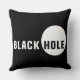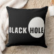 Black Hole text and a white circle or disc. Gifts, prints, t-shirts and other products for fun and good mood. Funny throw pillow. Customisable. You can change the image and you can change or delete the colour of the background. White background black circle is also available.