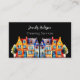 A black background decorated with colourful watercolored houses. Personalise and add your name and text on front.