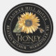 Black Label with Vintage Sunflower illustration and Realistic Bee features a double white border circling your Apiary Name and Location. Apiary name is displayed in curved text across the top and the beekeeper's name, city and town are written in curved text on the lower half of the label. There is a delicate white and taupe border near the outer perimeter of the label. The word "Honey" is written in a decorative font.