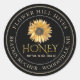 Black Label with Vintage Sunflower features a double white border circling your Apiary Name and Location. Apiary name is displayed in curved text across the top and the beekeeper's name, city and town are written in curved text on the lower half of the label. There is a delicate white and taupe border near the outer perimeter of the label. The word "Honey" is written in a decorative font.