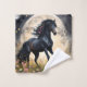 Pictured In Front Of A Full Moon In A Flower Field Is A Black Horse Rearing.