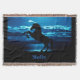 Black Horse Rearing Blue & Black Throw Blanket - Beautiful black horse rearing in front of a blue sky and water scene. Personalise this horse blanket with your name of that of a horse lover that you know!