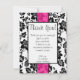 Black/Hot Pink Floral Damask Thank You Card