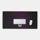 Black hot pink honeycomb geometry pattern Monogram Desk Mat