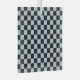 A seamless pattern of alternating black and light blue squares creates a classic checkerboard effect. The design is symmetrical and evenly spaced.